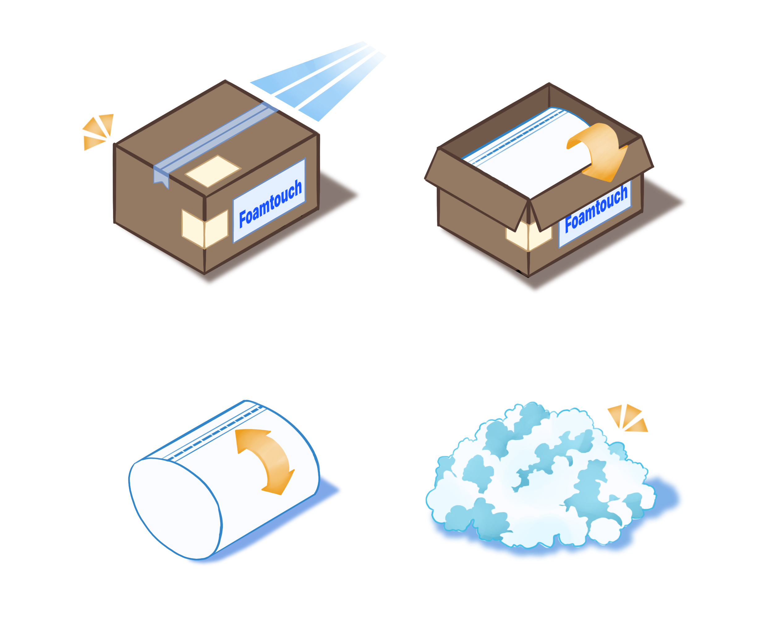 Our shredded foam is delivered vacuum-sealed and packed in a zipped bag for customer ease. Once you have received your package please take the packed shredded foam out of the package and unzip the bag. The shredded foam expands a little once opened. Enjoy your product and thank you for choosing FoamTouch.